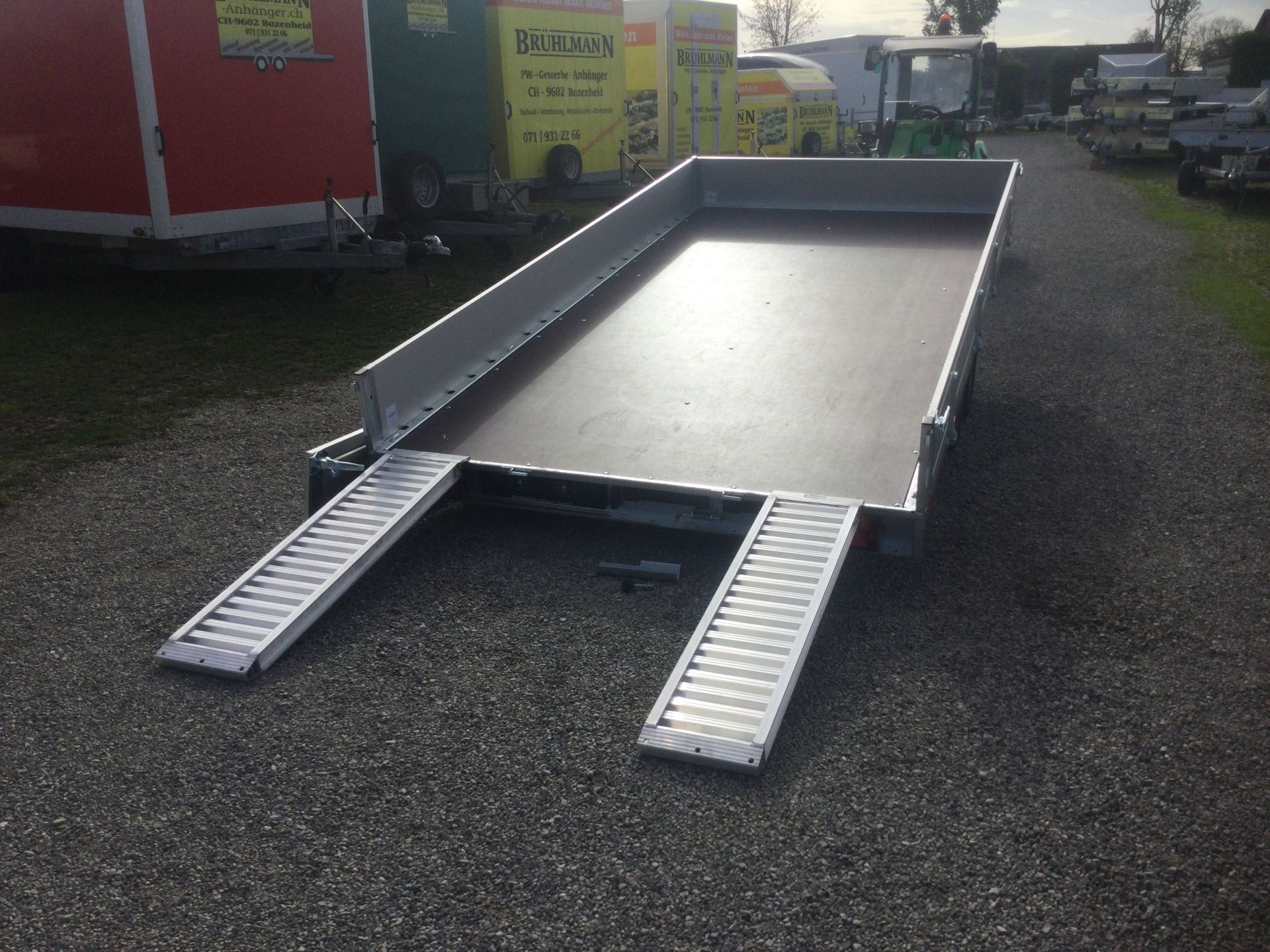 Chassis verzinkt, Räder unter der Brücke, Selbstkipper mit Dämpfer, Aluplankboden mit Bindesystem, Alurampen unten eingebaut, Rahmen aus Alu,
