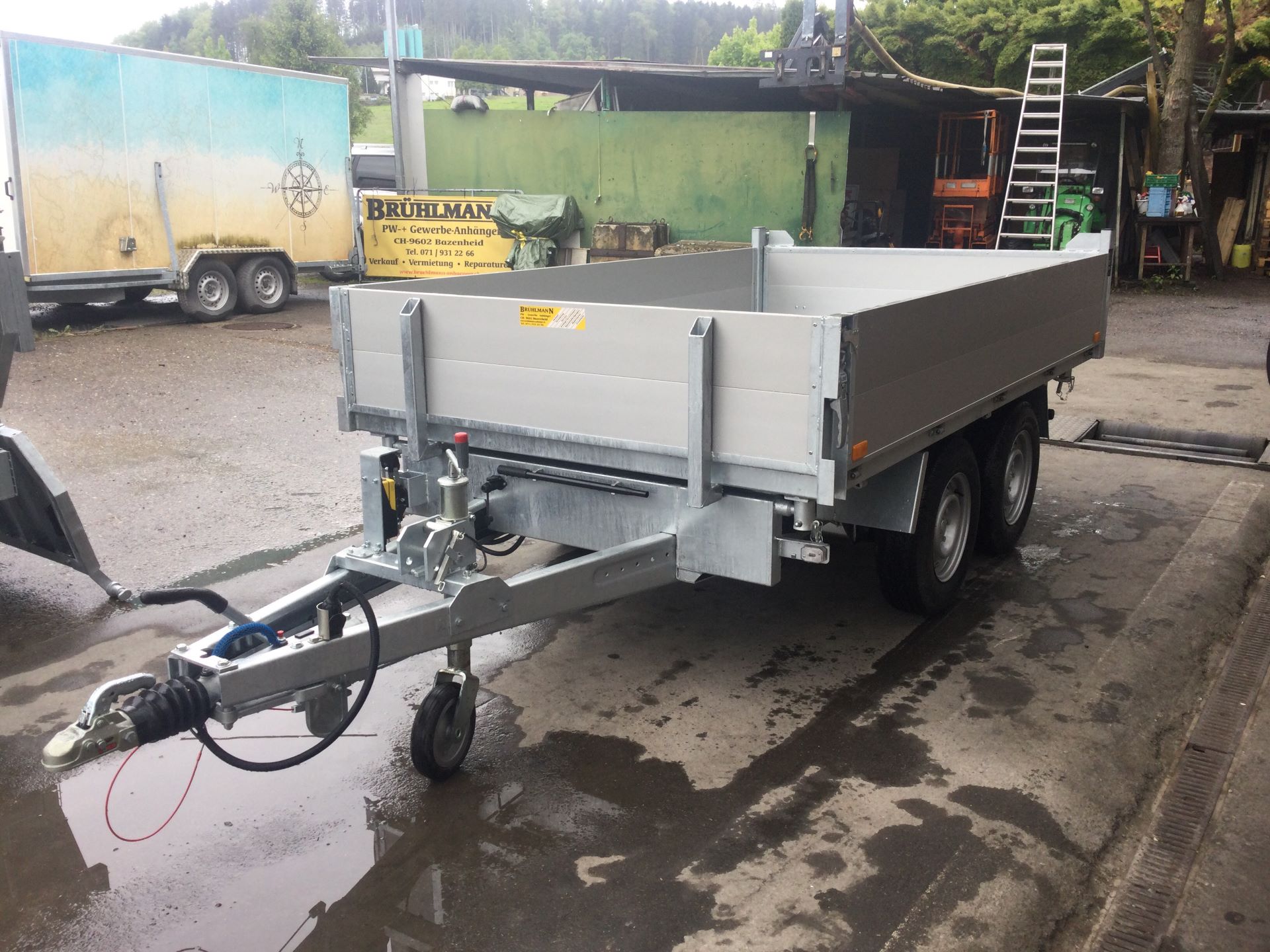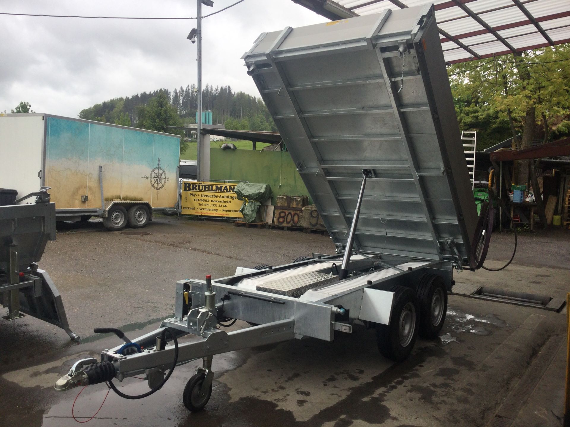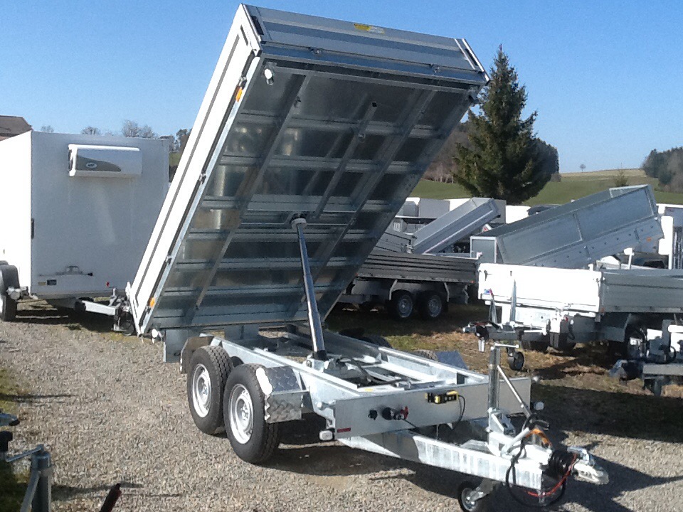 Chassis verzinkt, Tandem, Räder unter der Brücke, Alubordwände mit aufgebauten Verschlüssen, mit Handpumpe