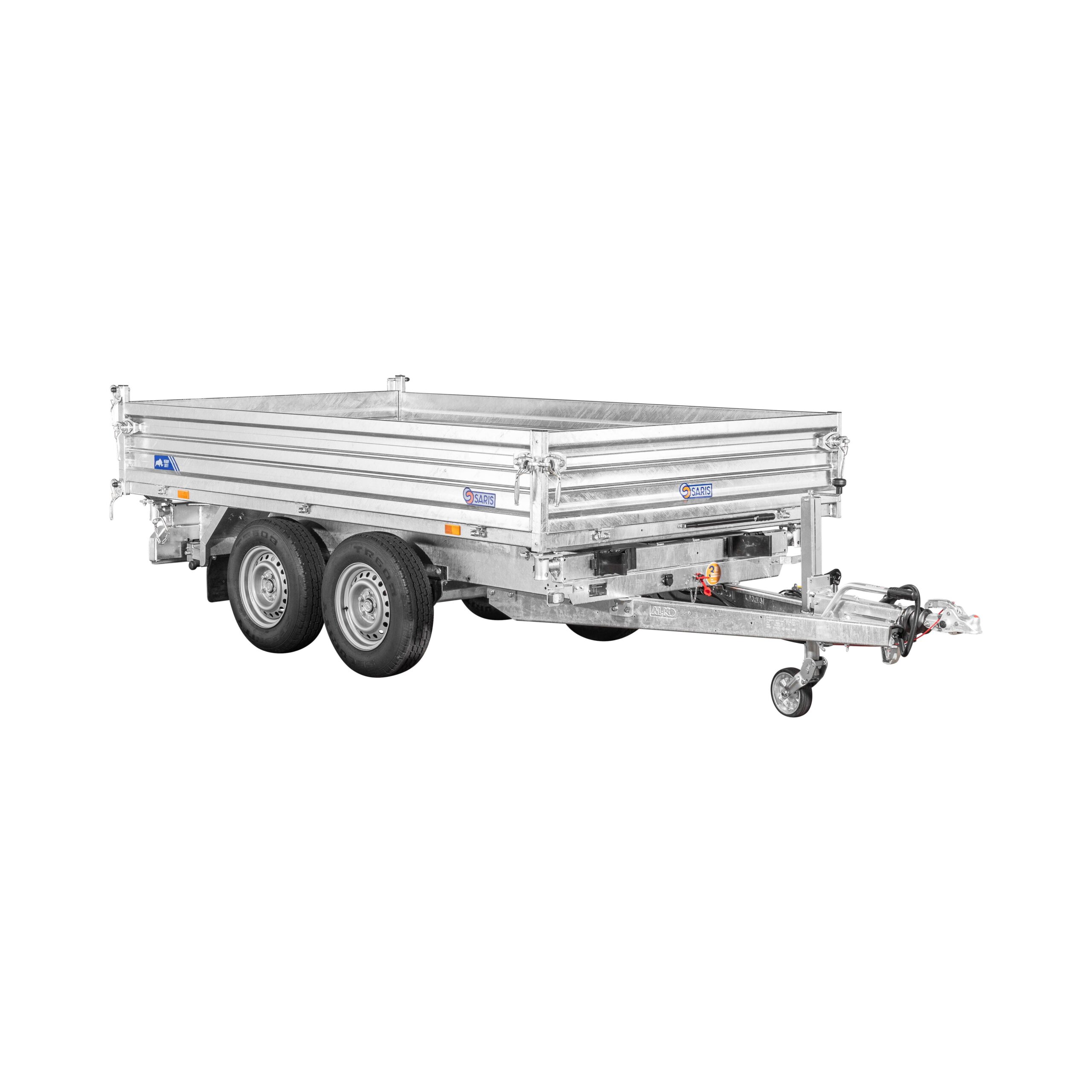 Chassis verzinkt und komplett verschweisst, Tandem, Räder unter der Brücke,Alubordwände mit Einbau-Drehstangenverschluss, Pendelrückwand mit Zentralverschluss,Rampenschacht, verstärkte Frontwand, Stahlblechboden 6 spez. versenkte Binderinge,Not – Handpumpe und Elektrohydraulik mit Batterie und Ladegerät,Auflaufbremse mit Rückfahrautomatik, Brückenhöhe 76 cm starke Automatikstützrolle Traglast 900 kg mit Balken