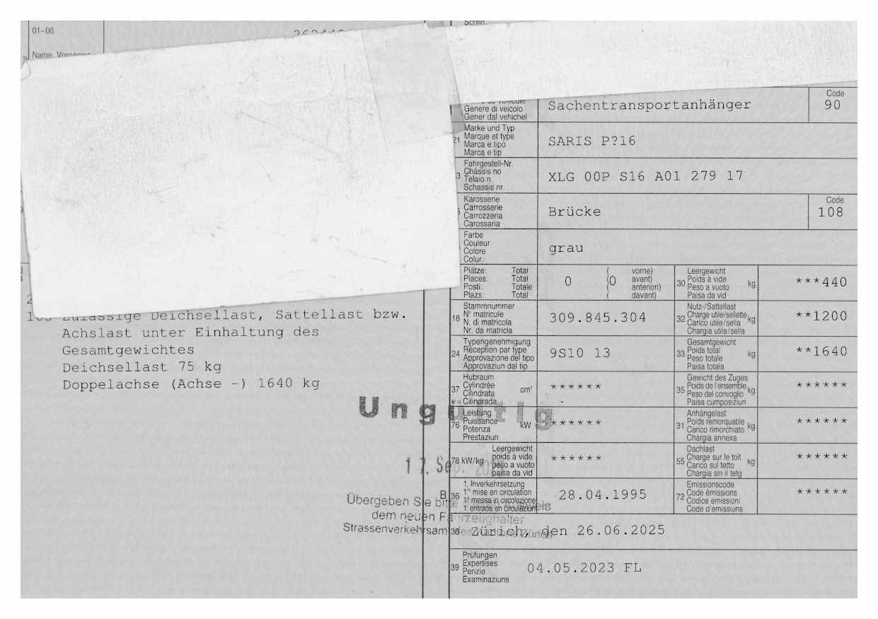 | 12589 | Saris P? 16 | TA Hochlader Aluseitenläden 3 Seitig abklappbar Siebdruckboden Stützrolle ab Platz mehr... | 1640 kg | 440 kg | 310 x 150 x 30 cm | 04.95 | 990.- |