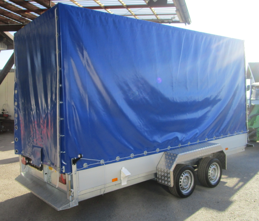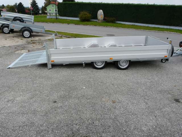Chassis verzinkt, Alubordwände 40 cm hoch, Zweiachser Hochlader / Räder unter der Brücke,