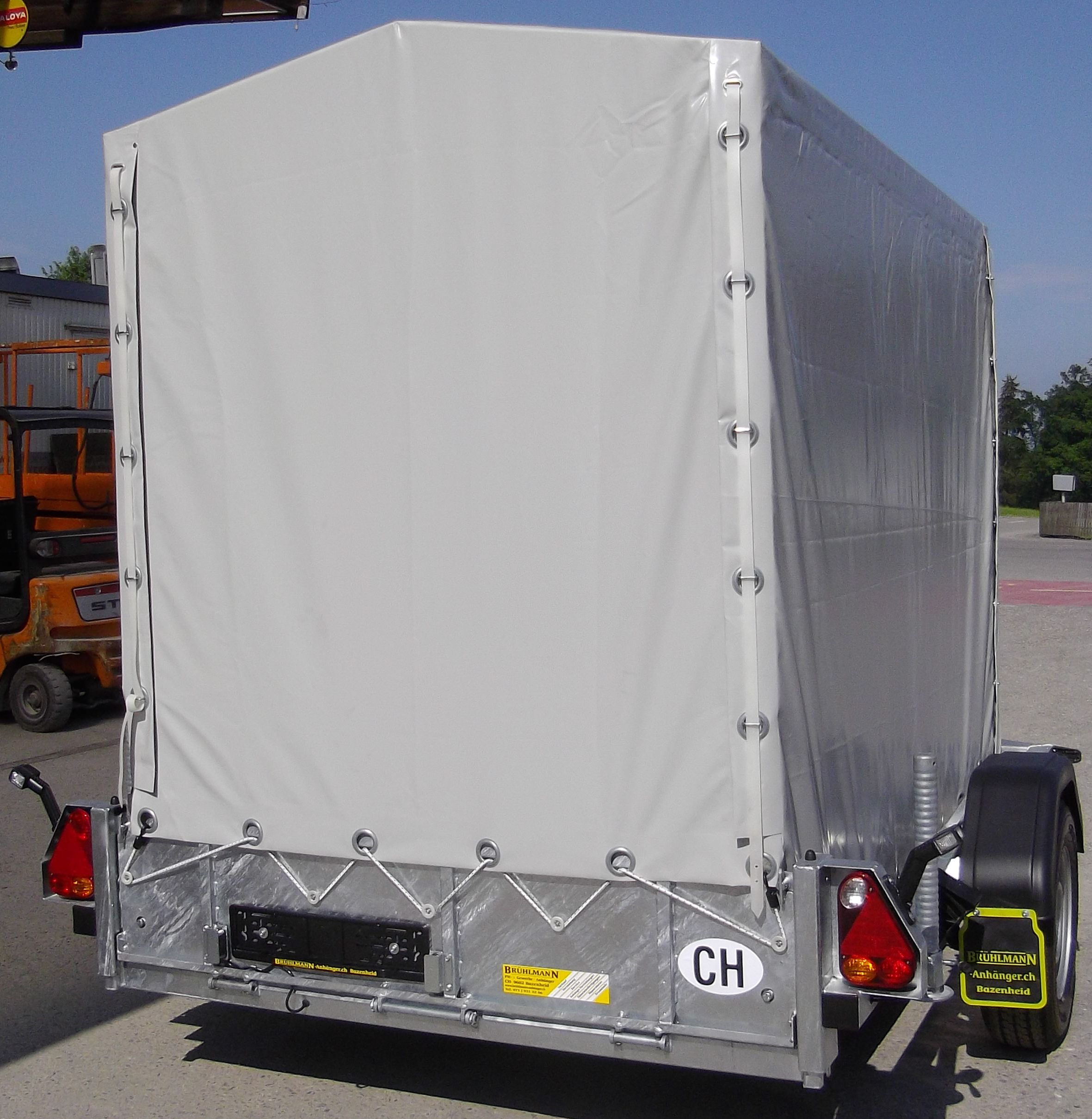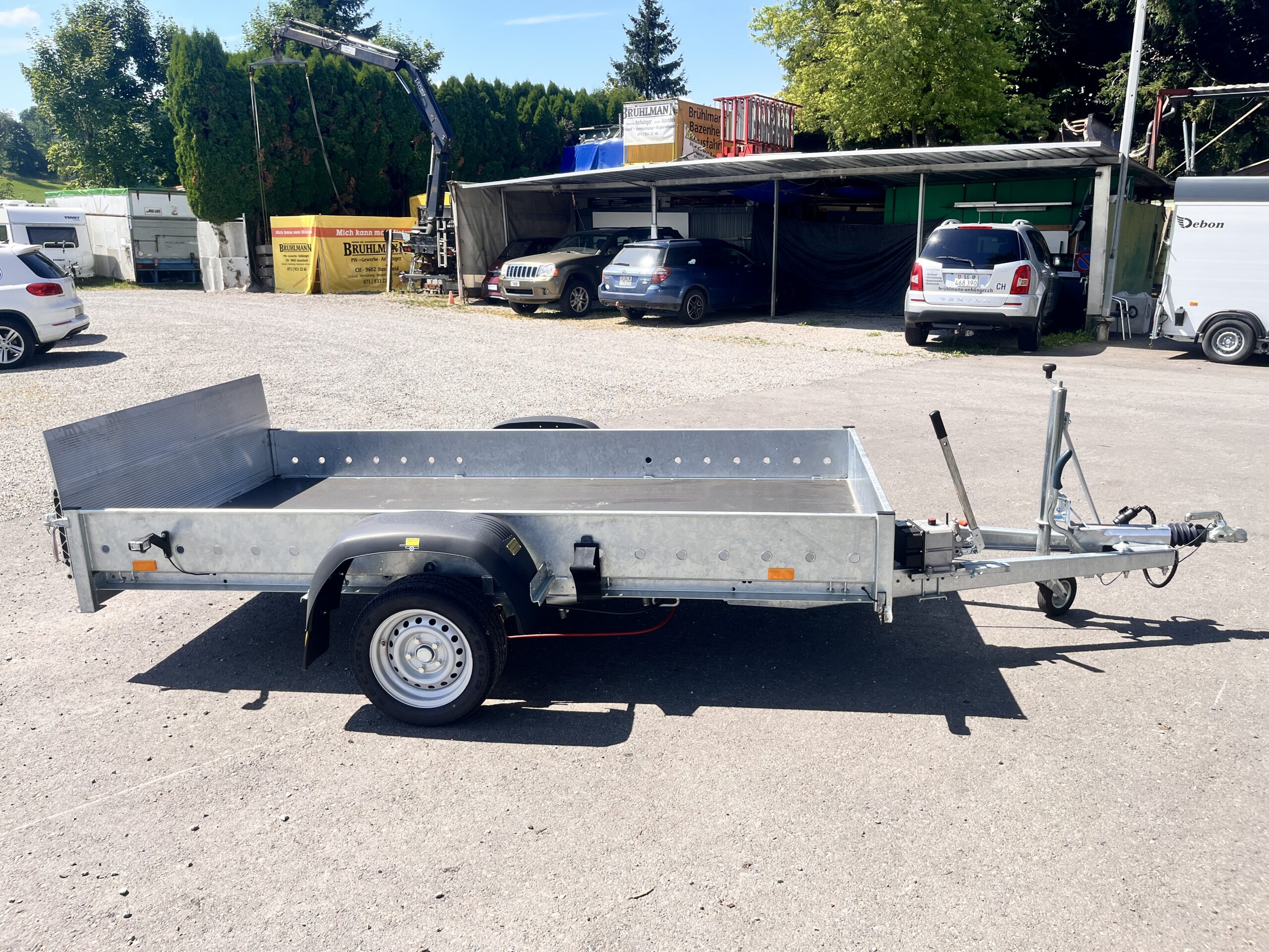 Auflaufbremse, V – Deichsel, Einachs, Siebdruckboden, div. Bindepunkte, Stahlbordwände