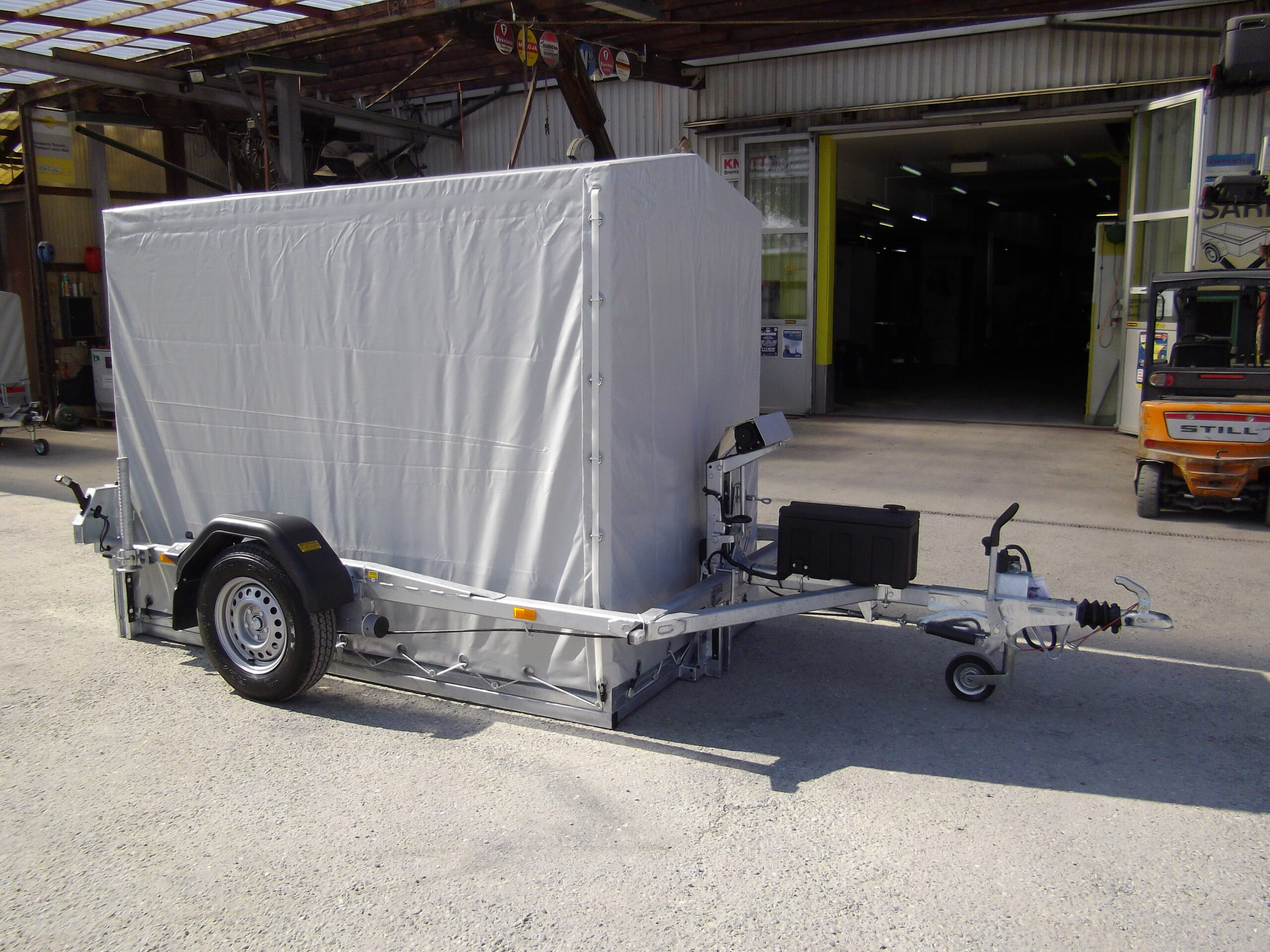 Auflaufbremse mit Rückfahrautomatik, Stützrolle und Stützen hinten