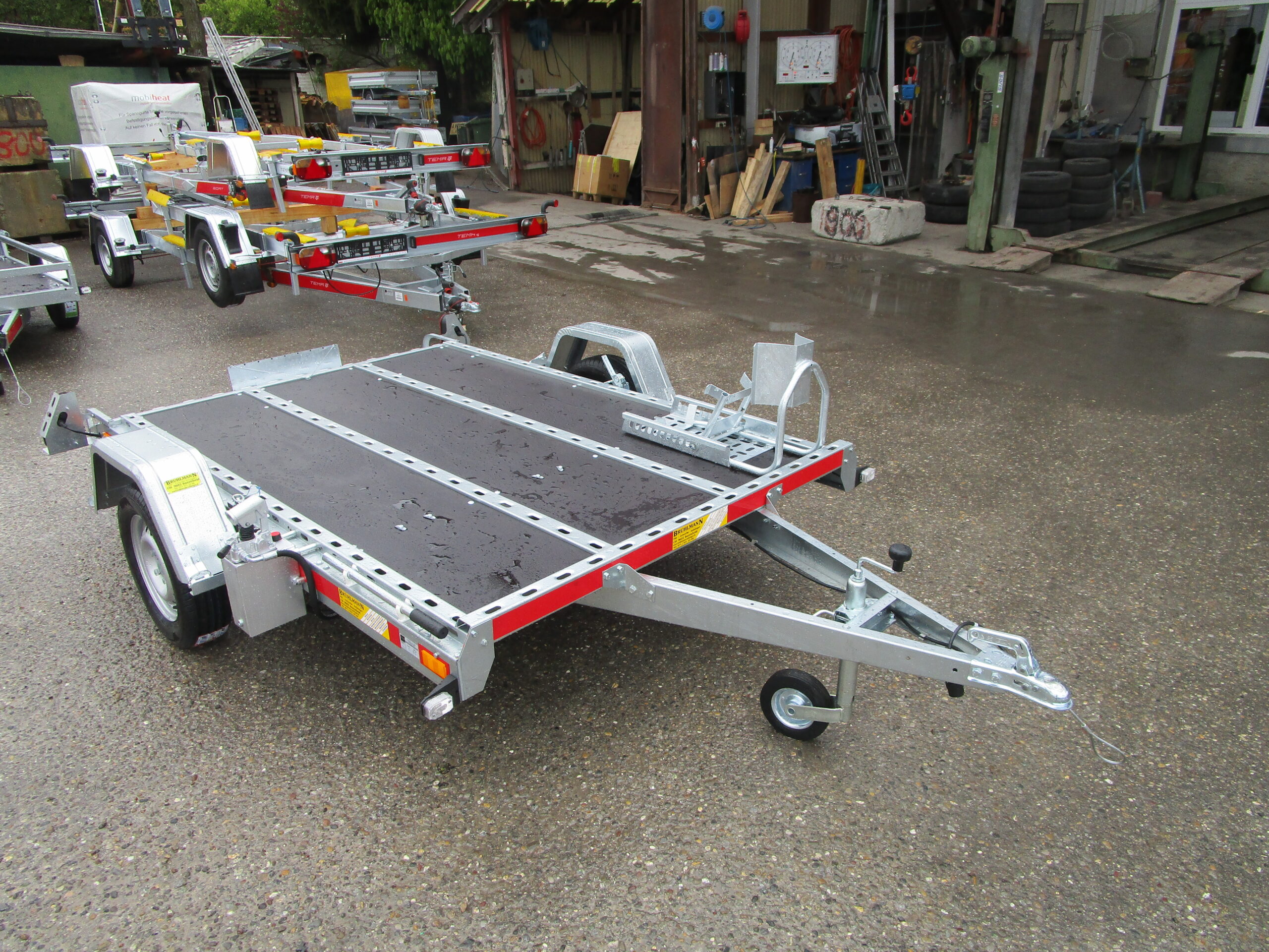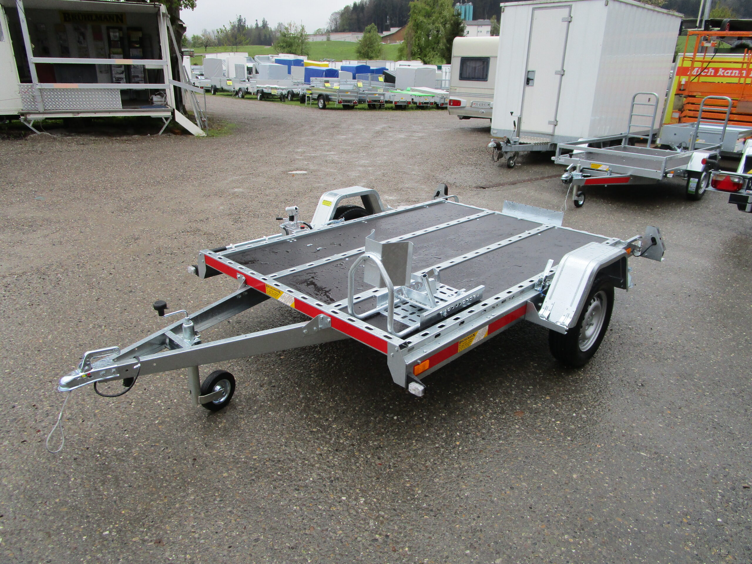 ohne Rampe direkt beladbar, Töffhalter, Stützrolle, Radwippe