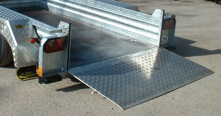 hydraulisch absenkbar mit Handpumpe, Stahlrampe über ganze Breite mit Rampenhilfe,