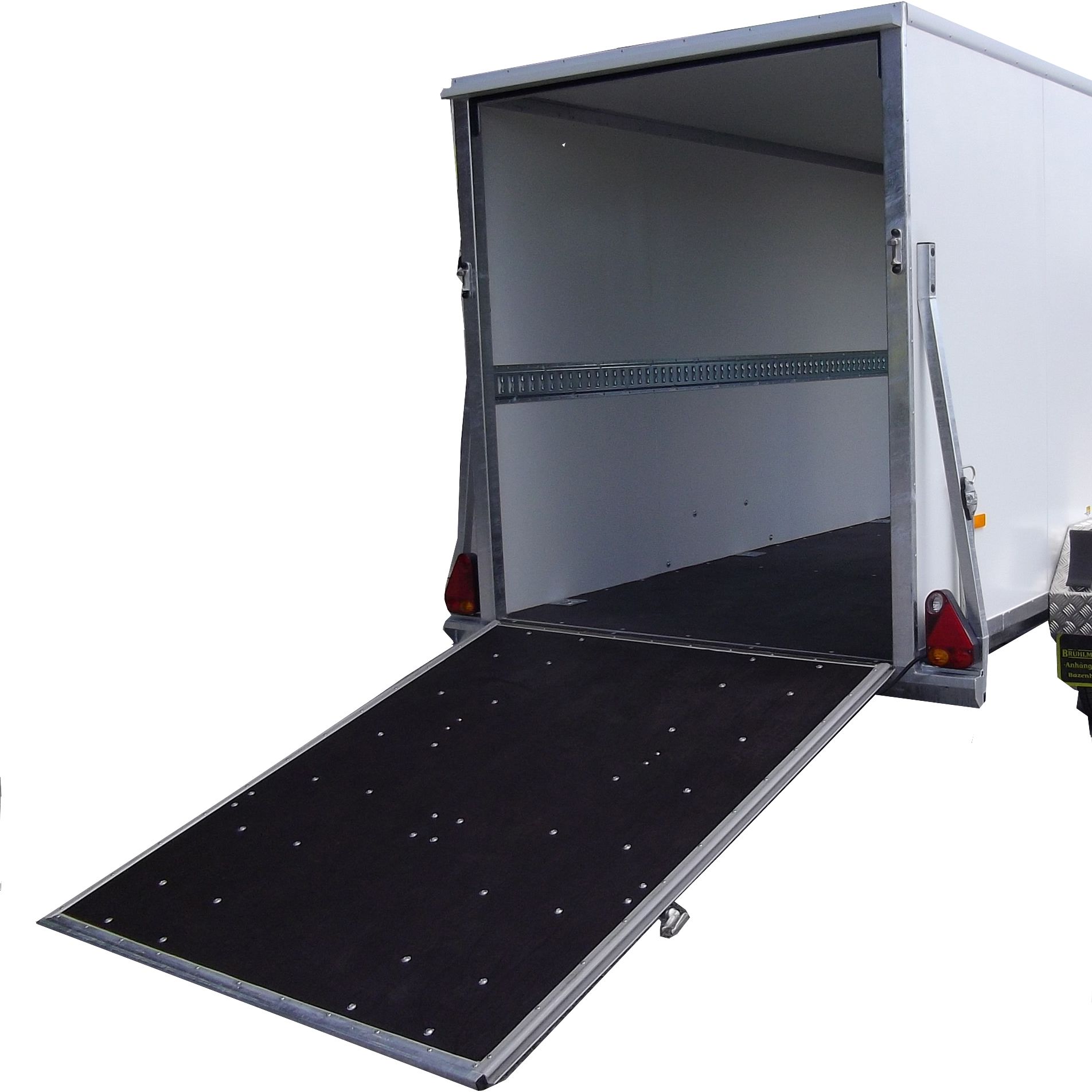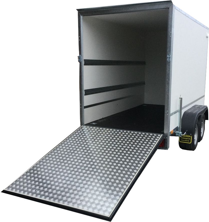 und mit inliegendem Drehstangenverschluss abschliessbar, hinten Alurampe Tragkraft 1600 kg mit Rampenhilfe,