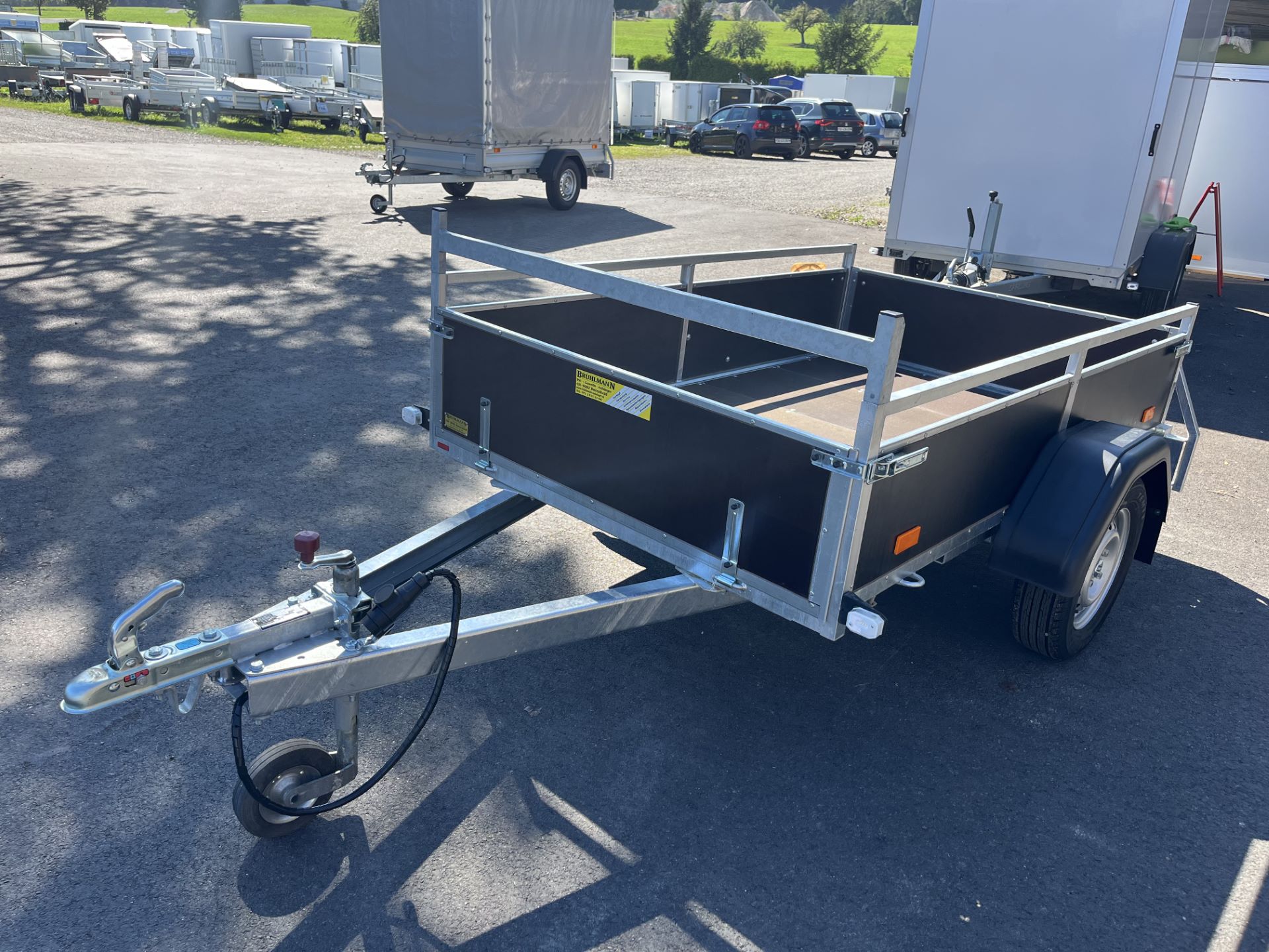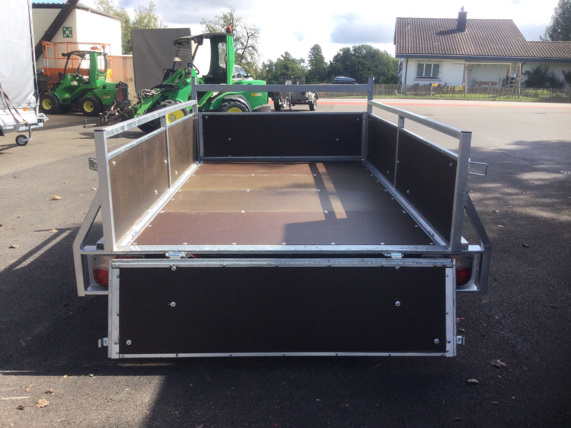 Tieflader Chassis verzinkt, Holzläden, Reling seitlich, Heck + Front klappbar,