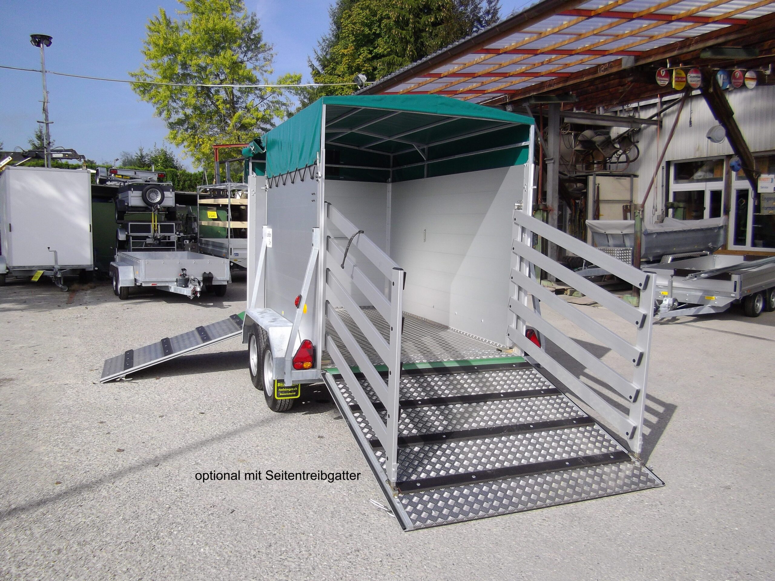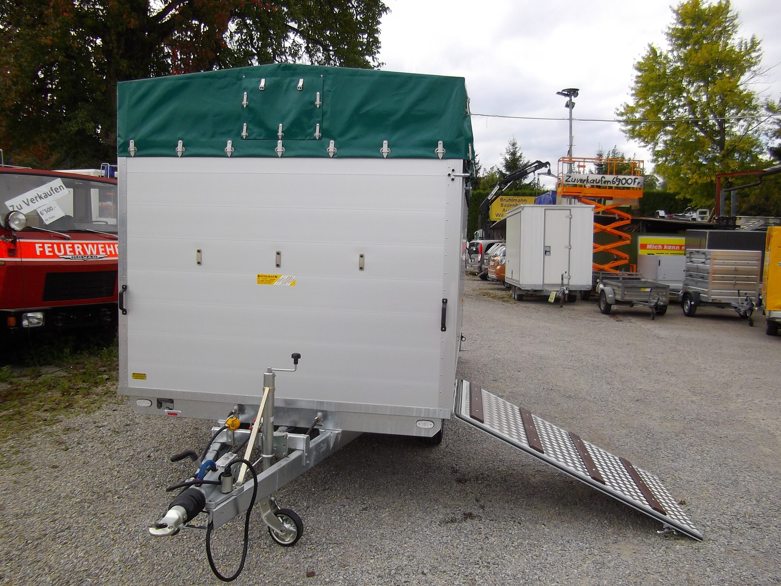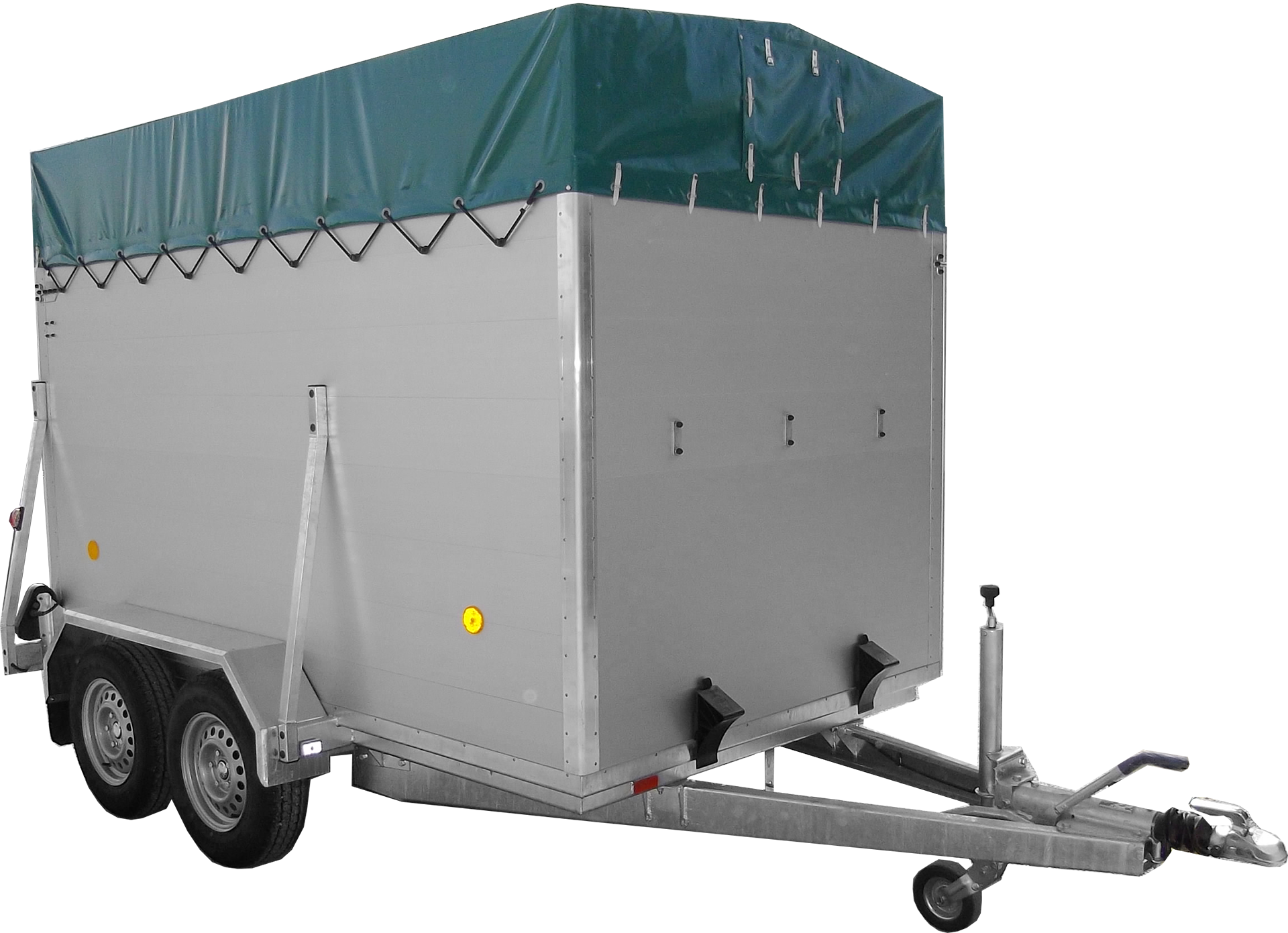 Chassis verzinkt, Tandem, Räder neben der Brücke, Aufbau viereckig, Aluwände 155 cm hoch + Plane